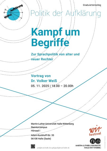 Das Graduiertenkolleg "Politik der Aufklärung" lädt am 5. November 2025 um 18 Uhr zu einem Vortrag mit Dr. Volker Weiß zum Thema: "Kampf um Begriffe. Zur Sprachpolitik von alter und neuer Rechter".